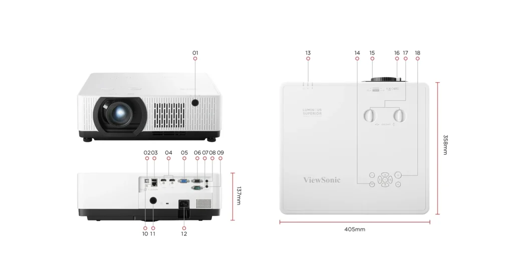 • Tính linh hoạt khi lắp đặt: dịch chuyển ống kính H/V, zoom quang 1,6x và hiệu chỉnh keystone H/V